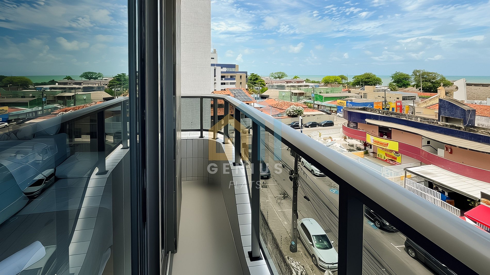- Varanda com vista para a rua e para o mar (não é de frente para o mar).