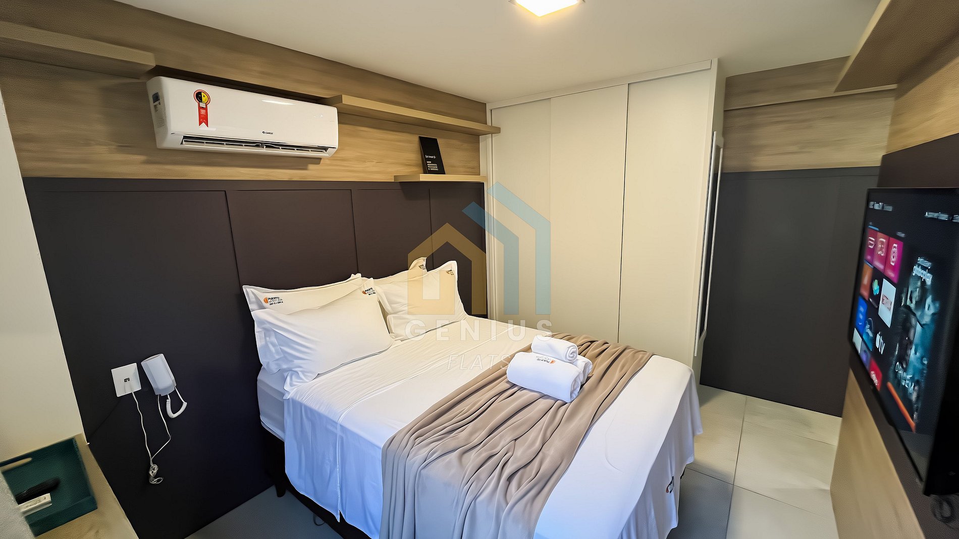 O tamanho do apto é bom. Tem TV nos dois quartos e na sala. Cozinha com armários e o básico de utensílios para fazer um café ou lanche. Um dos quartos suíte com cama de casal, armário e bancada; o outro com cama de solteiro, armário e um colchão sobressalente. Ar condicionado nos dois quartos. WIFI excelente. Hotel em frente a praia com uma praça de alimentação ao lado, que funciona a partir das 18h. No Flat há um prestador de serviço que fornece/vende café da manhã diferenciado. Vale a pena. Identificação facial para entrar no prédio. A Administradora passou todas as informações para acessar o prédio por whatsapp