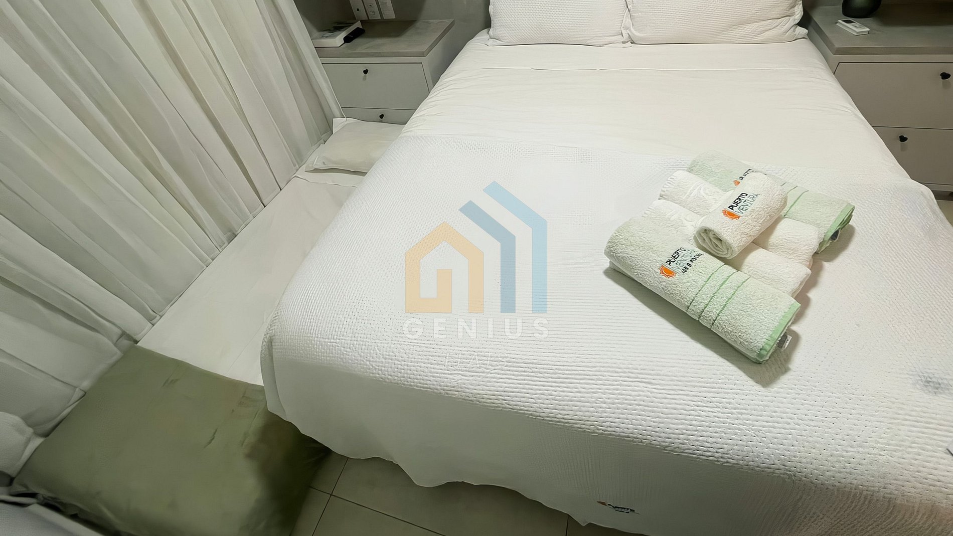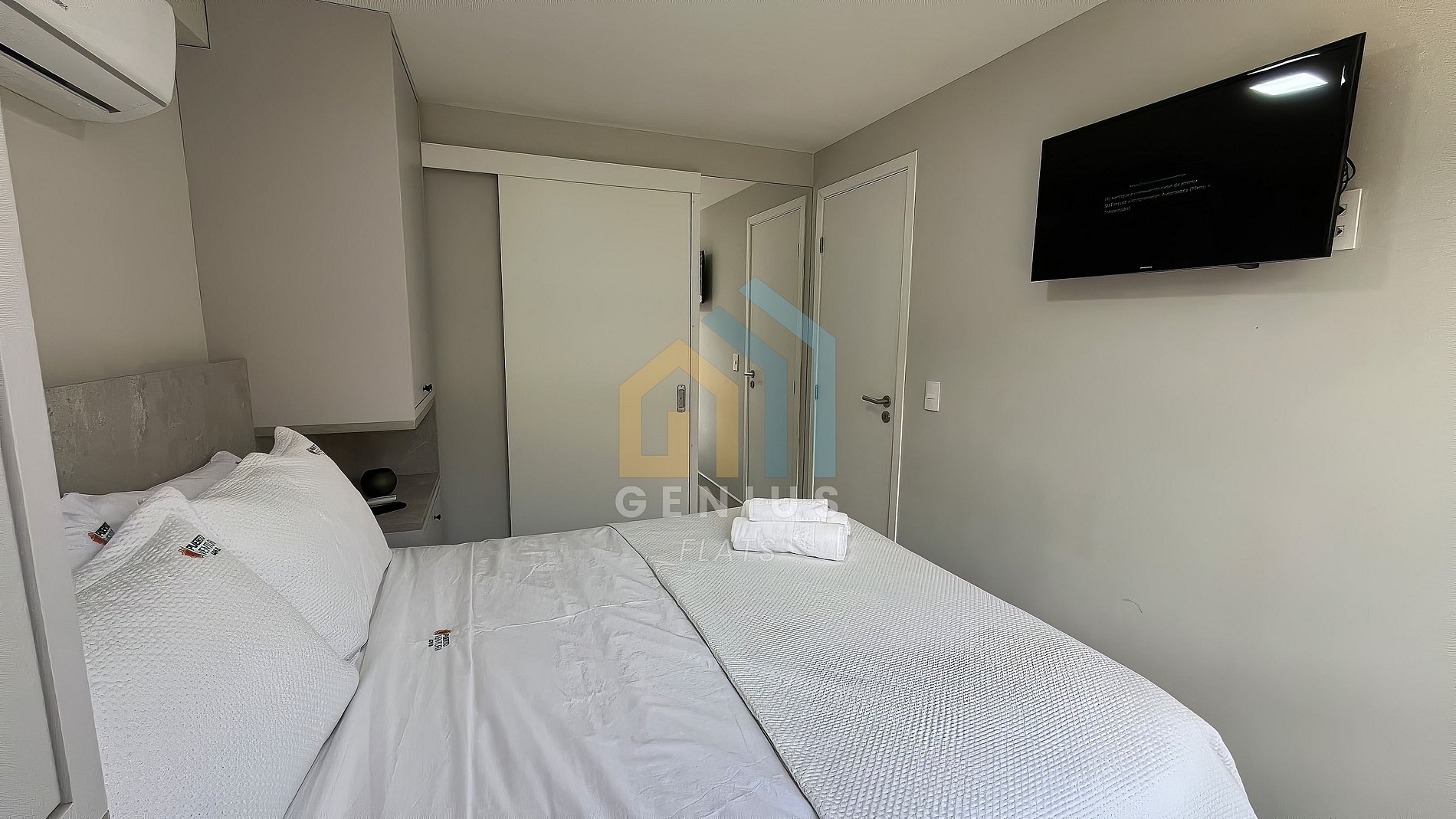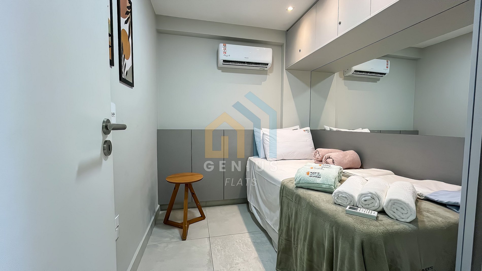 Apartamento no Cabo Branco com 2 quartos e 1 banheiro. Quartos climatizados, sala integrada com Smart TV, cozinha completa equipada e condomínio com piscina na cobertura, academia, cinema, jogos, minimercado, lavanderia, vaga de garagem e recepção 24h.