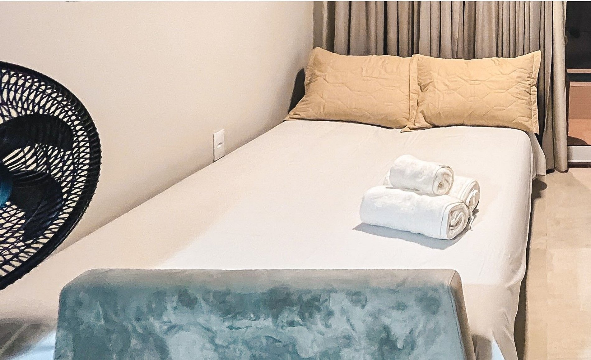 Itens inclusos – Jogo de cama por cama montada, 1 toalha de banho por hóspede, 1 toalha de mão por banheiro, kit inicial de limpeza (sabão, esponja, papel higiênico).