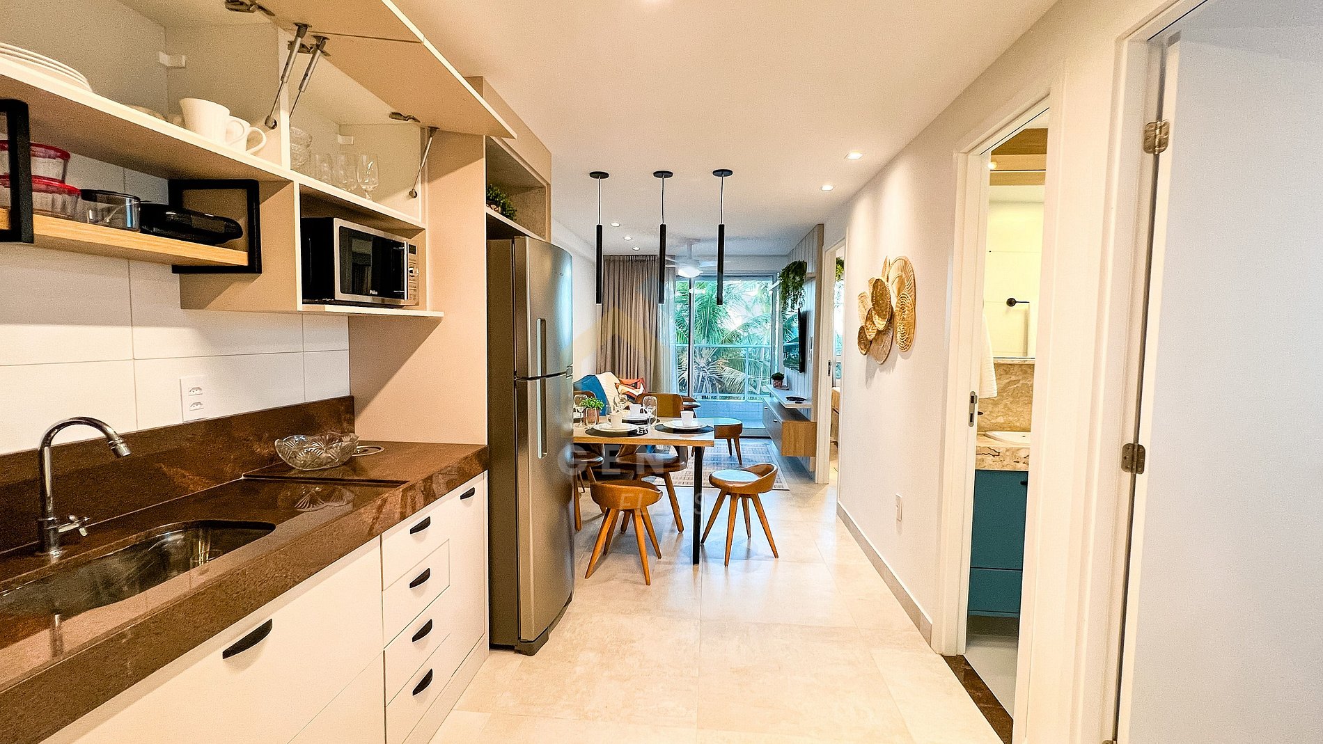 - Cozinha completa com eletrodomésticos e utensílios.