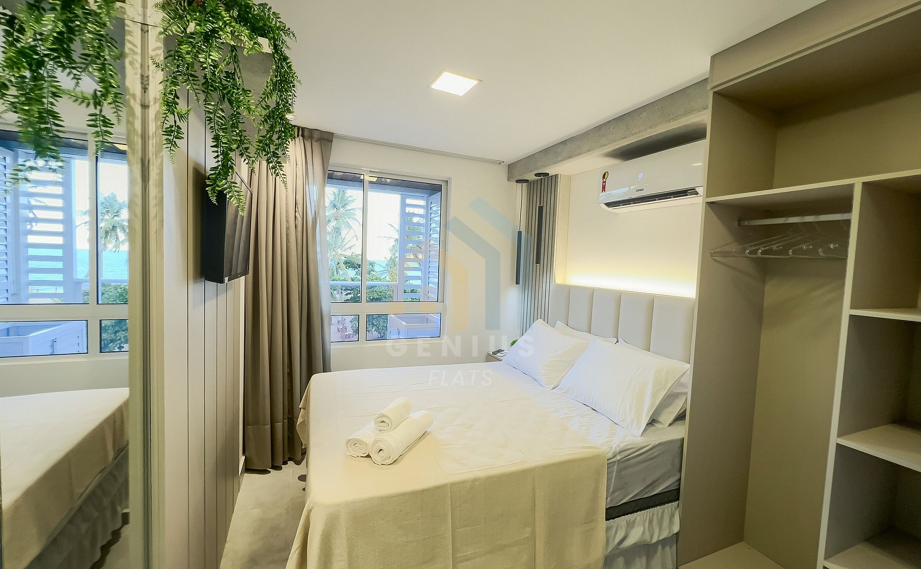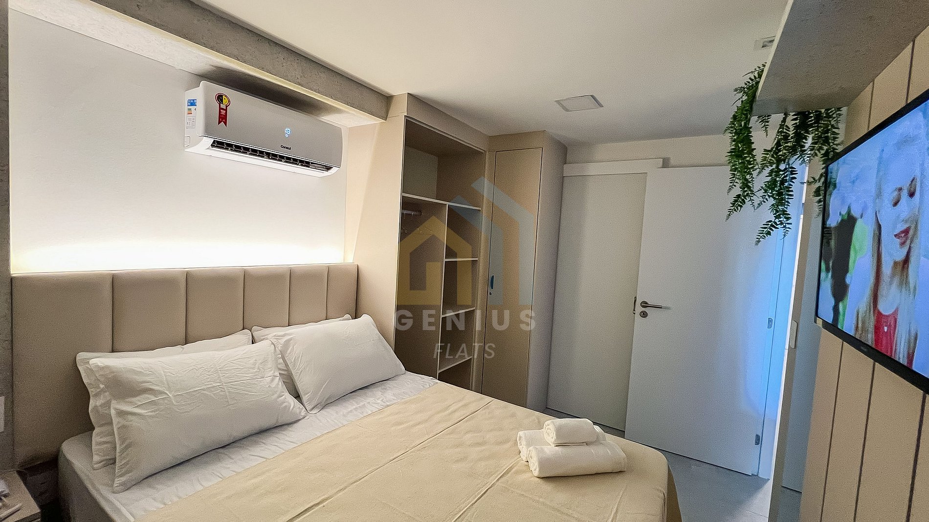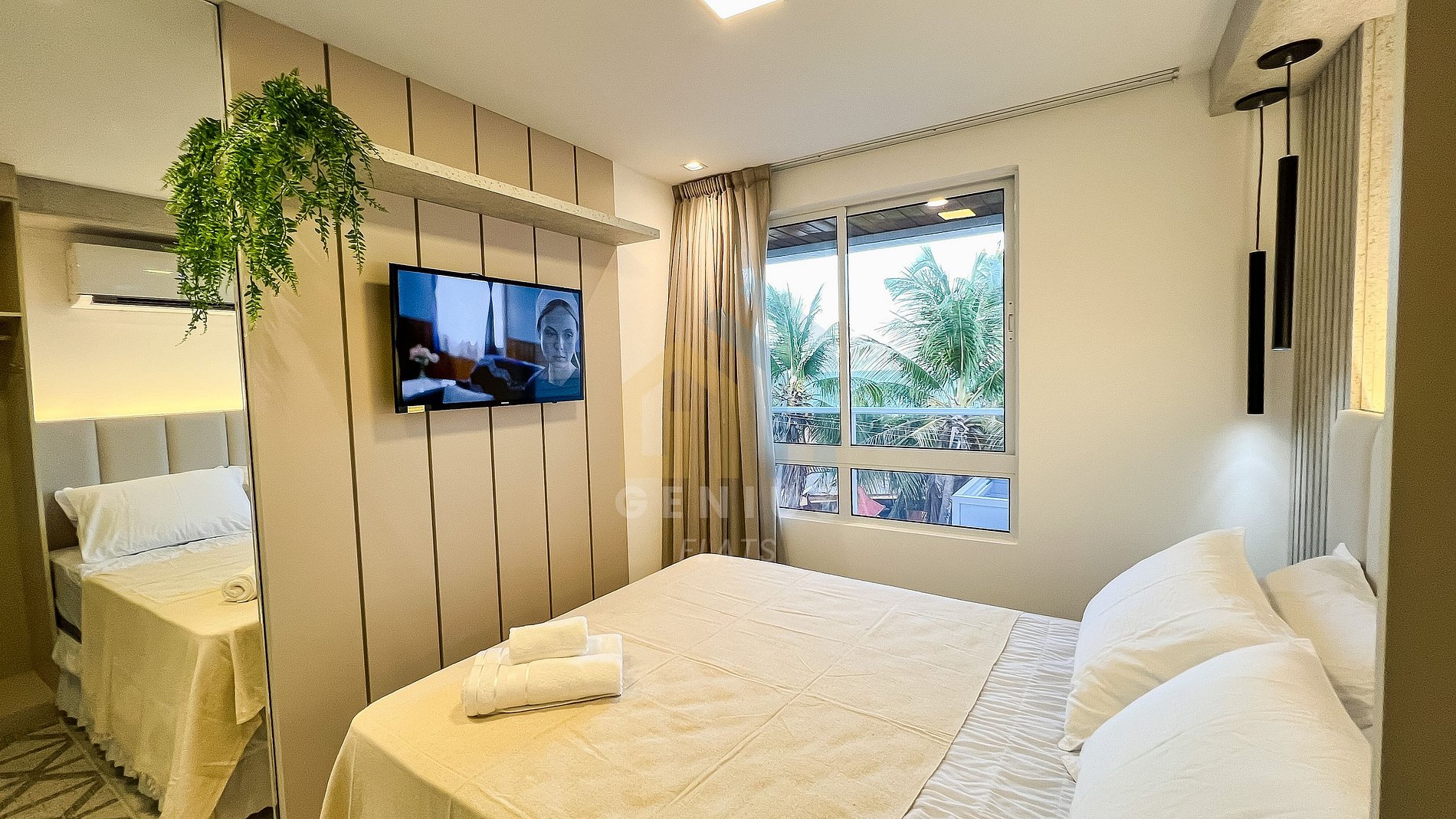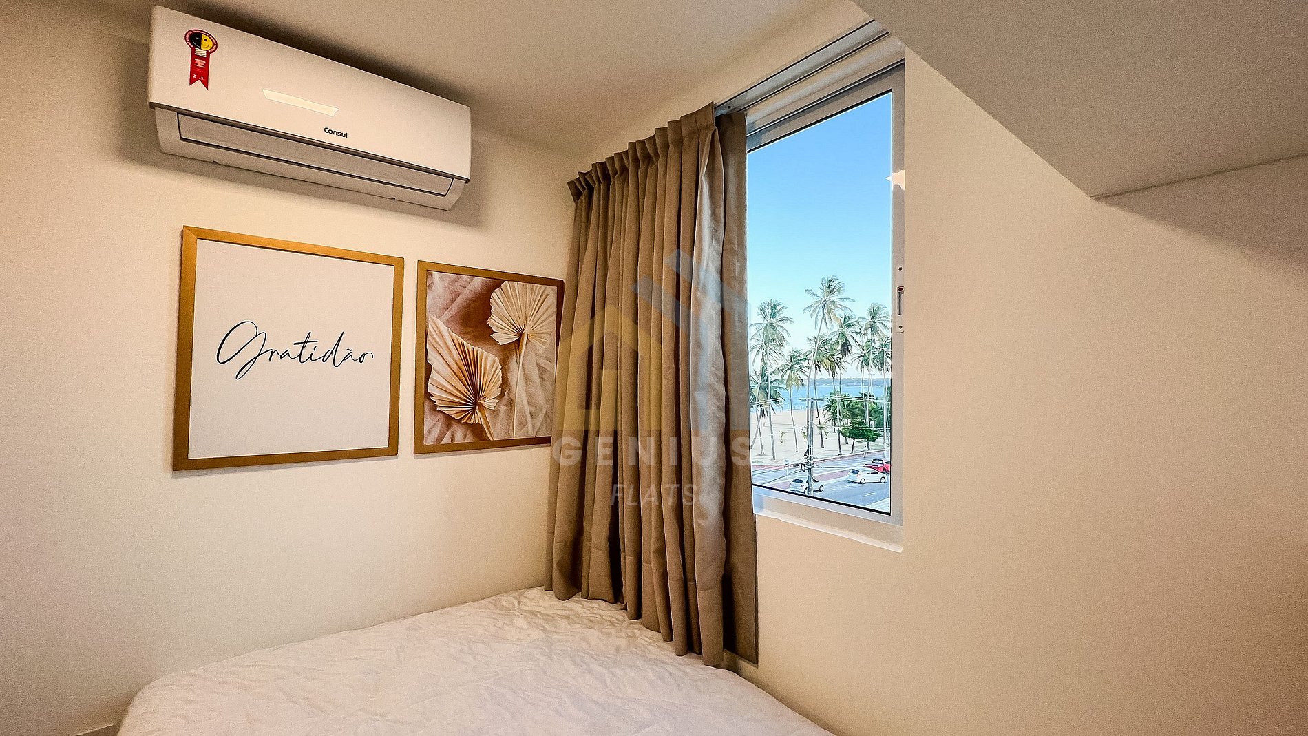 Apartamento no Cabo Branco com 2 quartos (1 suíte), 2 banheiros e varanda frente com vista para o mar. Quartos climatizados, sala integrada com Smart TV, cozinha completa equipada e condomínio com piscina na cobertura, academia, cinema, jogos, minimercado, lavanderia, vaga de garagem e recepção 24h.