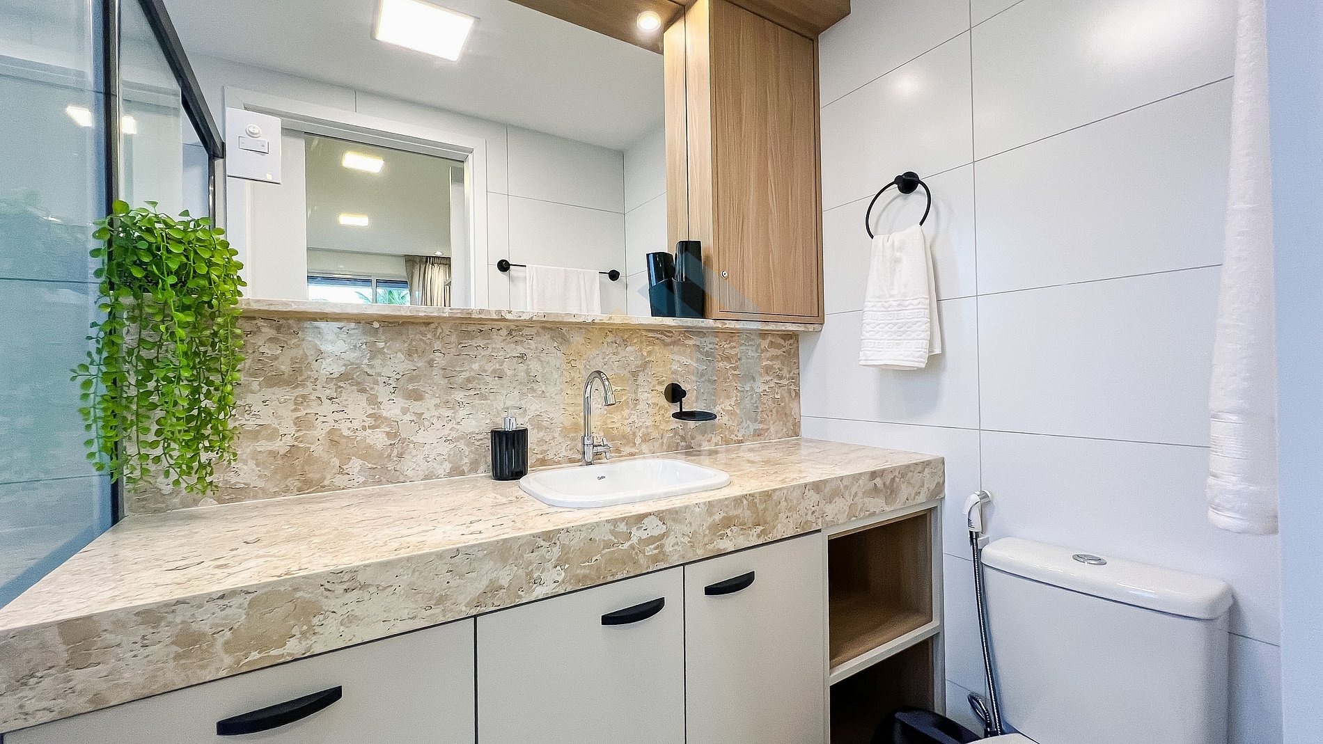 - 2 quartos (sendo 1 suíte), ambos com ar-condicionado; um deles com TV.