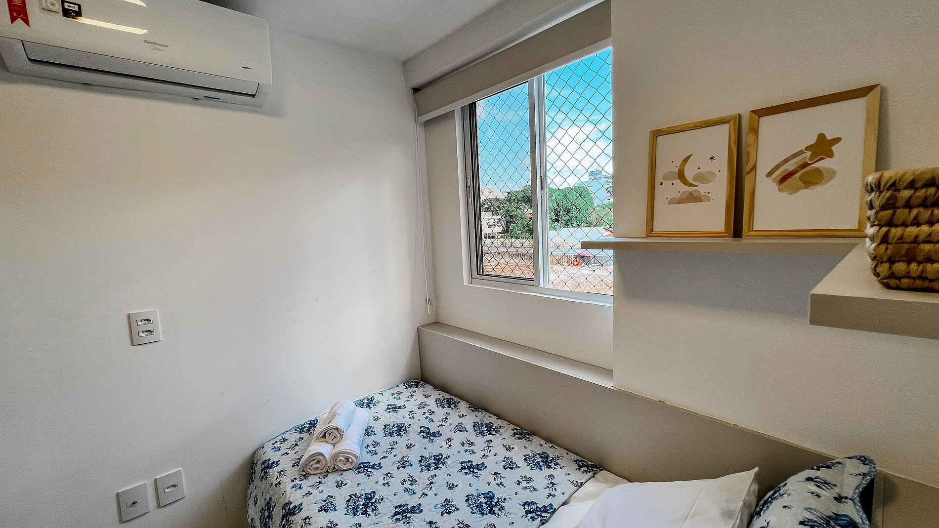 - 2 quartos (sendo 1 suíte), ambos com ar-condicionado; um deles com TV.