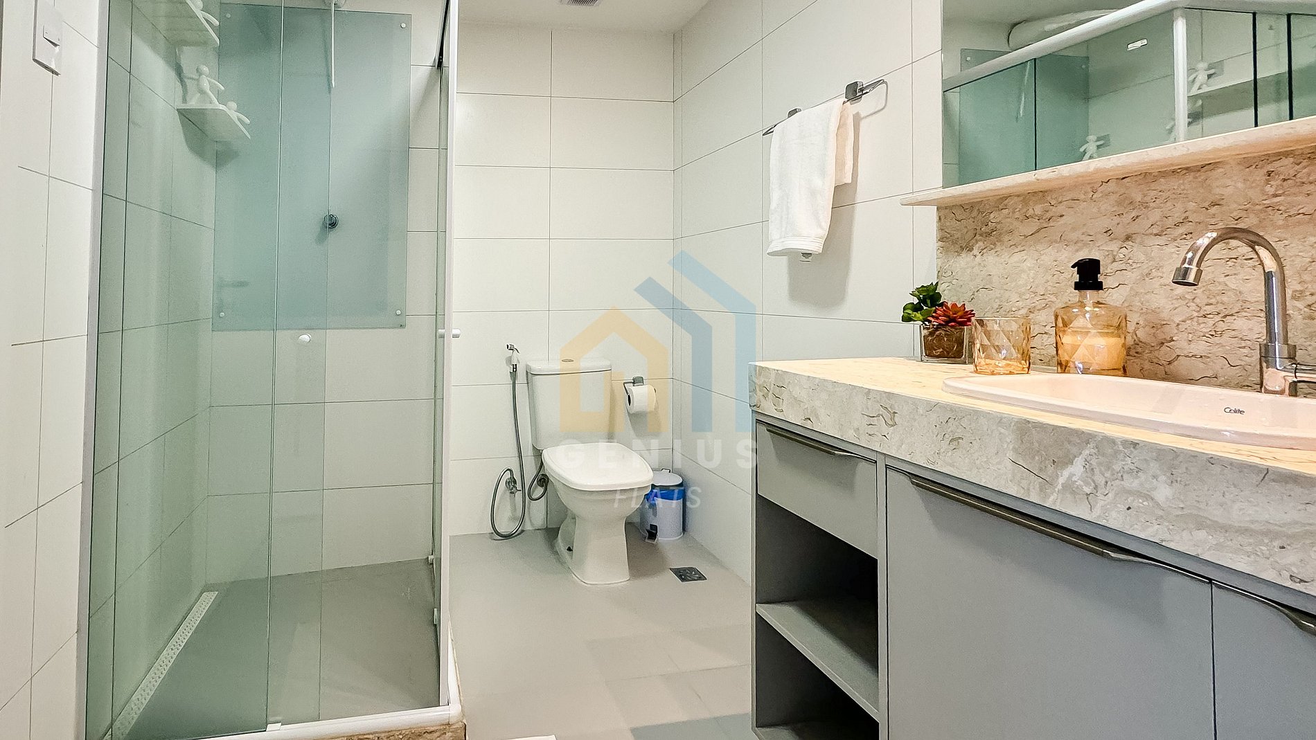 Apartamento no Cabo Branco com 2 quartos (1 suíte), 2 banheiros e varanda. Quartos climatizados, sala integrada com Smart TV, cozinha completa equipada e condomínio com piscina na cobertura, academia, cinema, jogos, minimercado, lavanderia, vaga de garagem e recepção 24h.