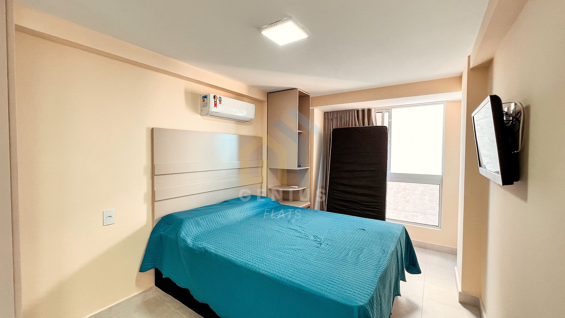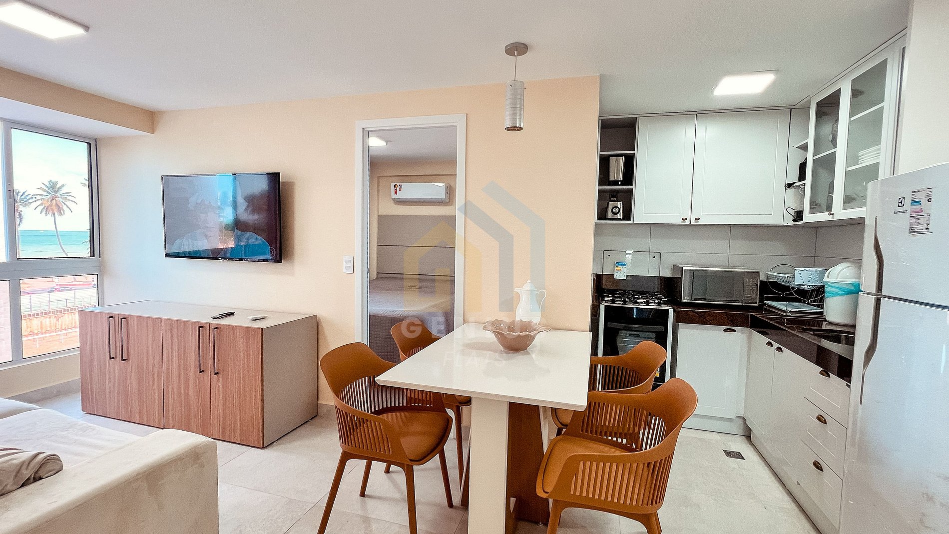 Apartamento no Cabo Branco com 2 quartos (sendo 2 suítes) e 2 banheiros. Quartos climatizados, sala integrada com Smart TV, cozinha completa equipada e condomínio com piscina na cobertura, academia, cinema, jogos, minimercado, lavanderia, vaga de garagem e recepção 24h.