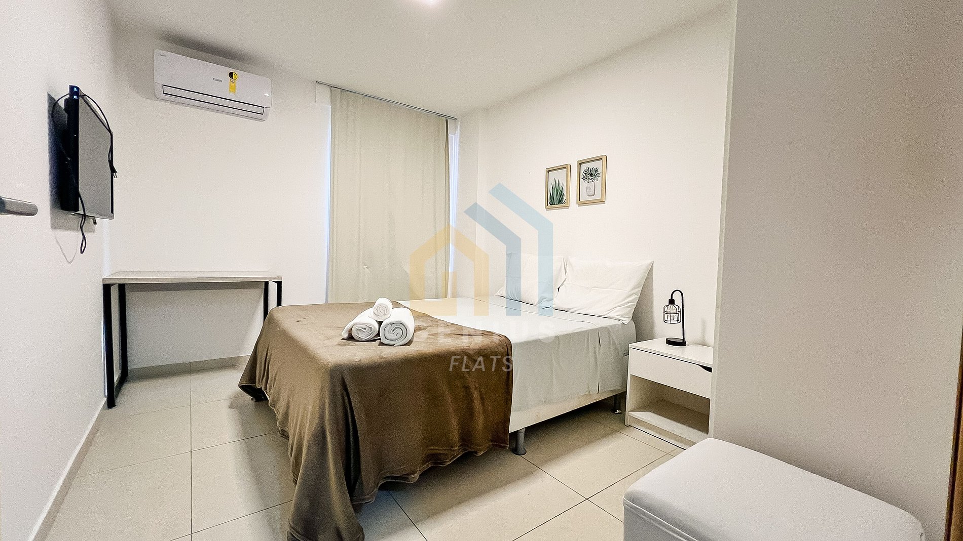 - 2 Quartos: Ambos equipados de acordo com a configuração do anúncio e ar condicionados.