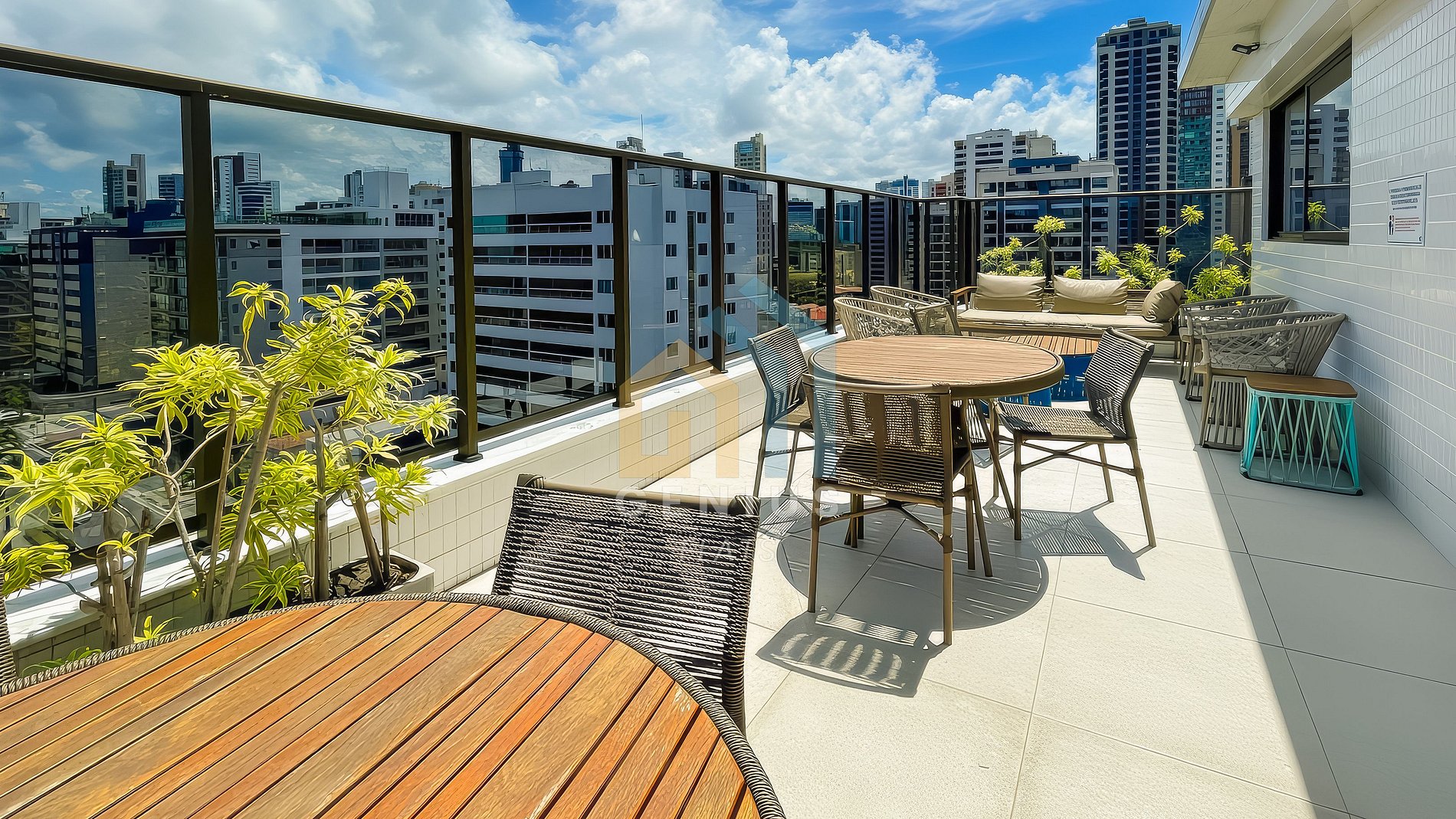 Rooftop: Área de lazer na cobertura com vista panorâmica para o mar e a cidade.